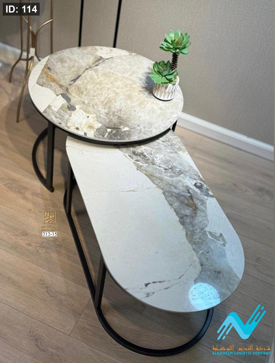 الطاولة البيضاوية: 100 سم طول × 50 سم عرض × ارتفاع 40 سم